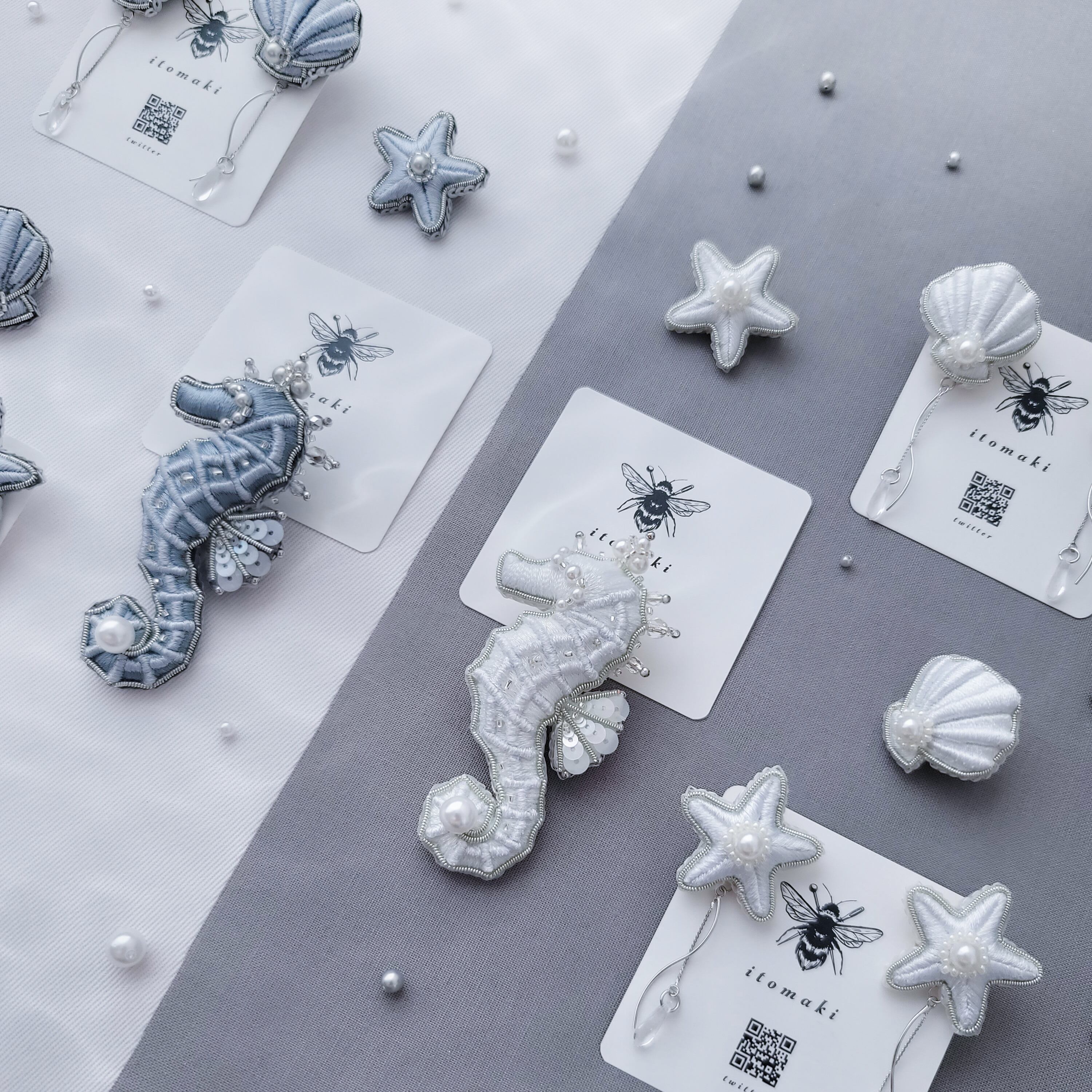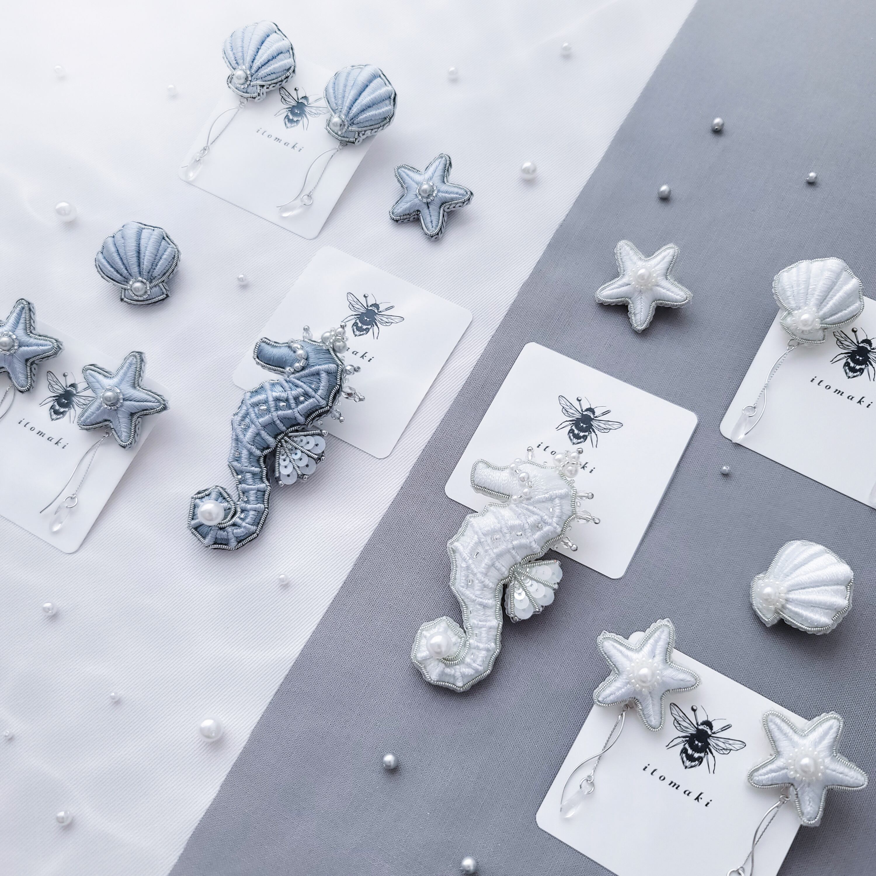 1つ1つのビーズ選び、刺繍とビーズのバランスにこだわって制作しております。