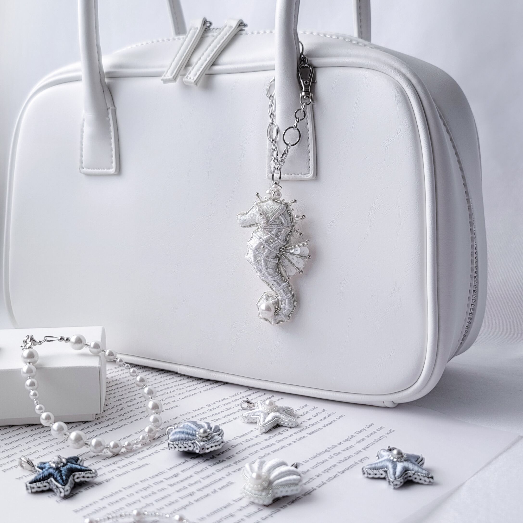 タツノオトシゴ ホワイト バッグチャーム